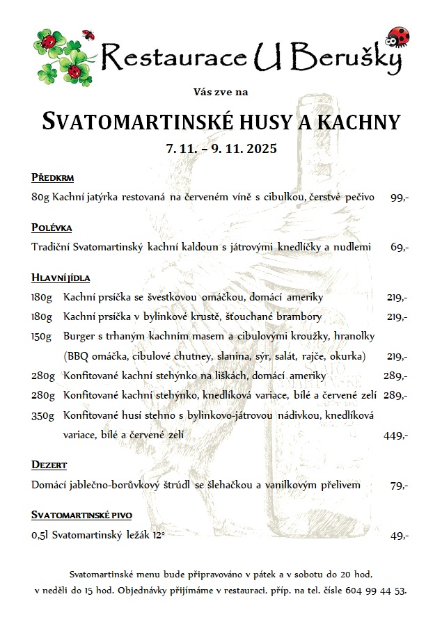 Rok se s rokem sešel, a tak se během prodlouženého víkendu od 7.11. můžete v Restauraci U Berušky opět těšit na tradiční Svatomartinské hody 🤩🐞