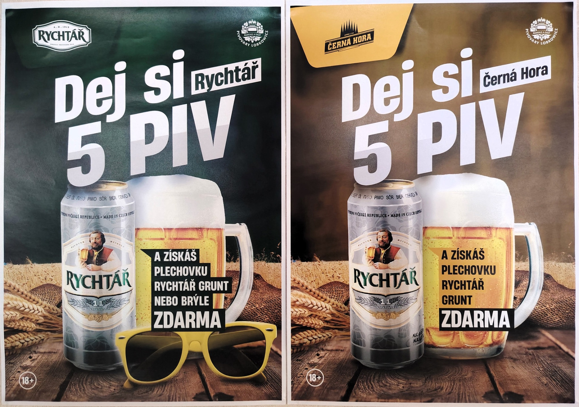 Společně s Pivovarem Rychtář jsme si pro Vás připravili akci Dej si 5 piv a získáš plechovku nebo brýle zdarma.