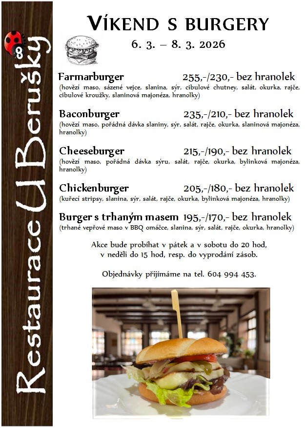 Pro bližší informace nás můžete kontaktovat na tel. č. 604 99 44 53 nebo navštívit naši restauraci.